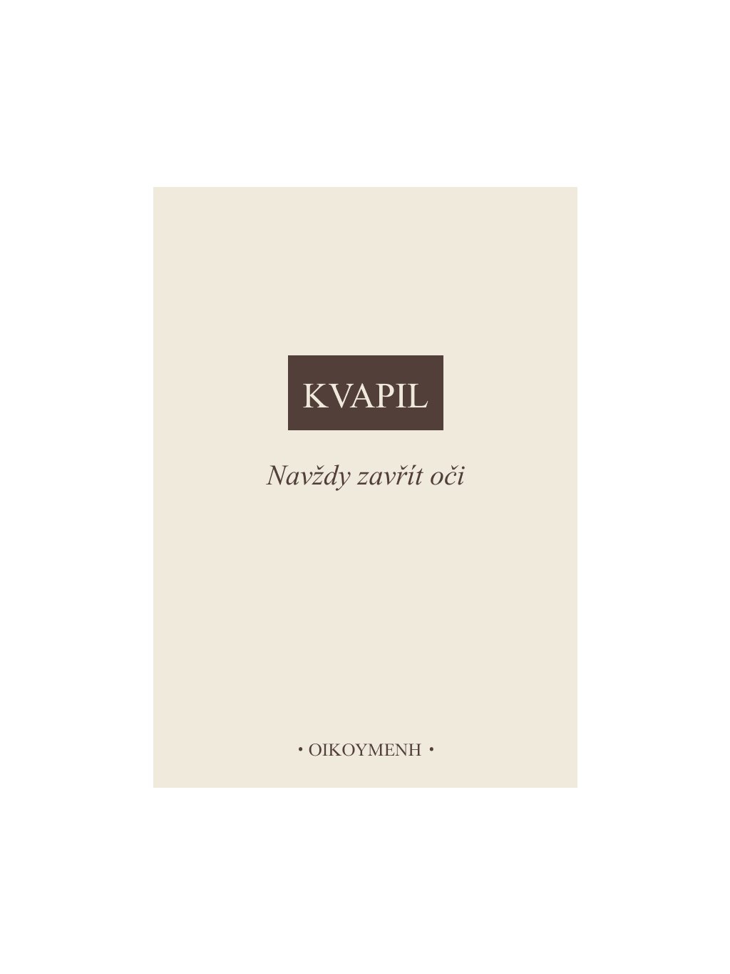 Otázka smrti je stará jako filosofie sama. Přesto se nás přední myslitelé tradice od Augustina po Derridu snaží přesvědčit o tom, že o smrti přemýšlet nelze. Kniha Navždy zavřít oči problematizuje tento závěr. Ondřej Kvapil formuluje nevyřčené premisy, na kterých teze o nepochopitelnosti smrti stojí, a přitom ukazuje nejen to, že o smrti přemýšlet můžeme, nýbrž také to, že o smrti, kterou nelze zažít, představit si, ani přemoci vůlí, můžeme jen a pouze přemýšlet – anebo jí zemřít.